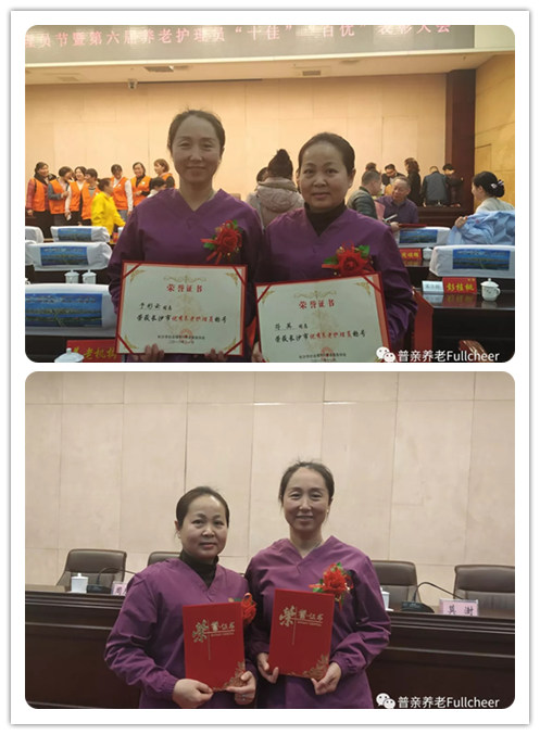2018年11月23日,長沙市舉辦第四屆養老護理員節活動暨長沙市第六屆養老護理員“十佳”、“百優”表彰大會,長沙市普親老年養護院的于彩云和長沙市普親馮家沖社區老年養護中心的符英兩位護理員榮獲長沙市第六屆養老護理員“百優護理員”稱號。