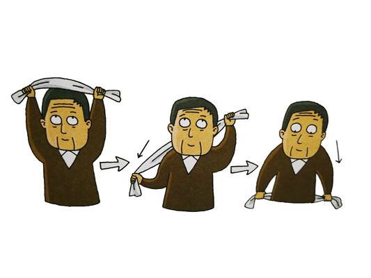 ④如能很好地將毛巾繞過脊背,就算成功了。