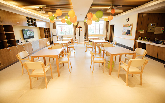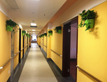 院內裝修布局按照失能、失智老人不同標準合理安排,考慮護理操作的方便性和低風險性,同時兼顧隱私和互不干擾的原則,一樓設為失能老人生活區,內設康復室、護士站、臨終關懷室及老人用餐區。二樓設為失智老人生活區,內設護士站、用餐室。院區內還設有公共洗衣房、廚房、倉庫以及后勤行政辦公室。