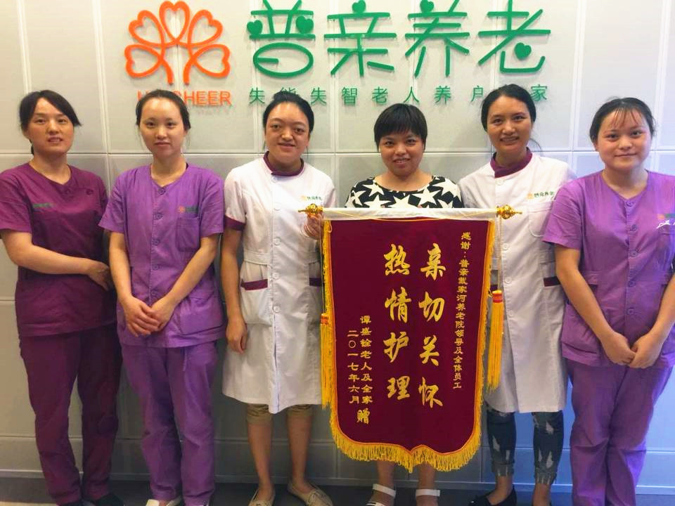戴家河機構老人家屬贈送“親切關懷·熱情護理”錦旗。
